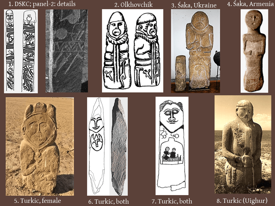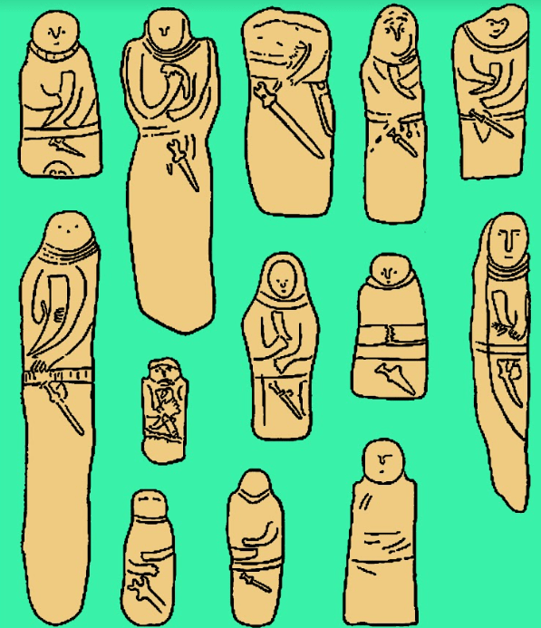 Postacie z Rusi, na kijkach są dowodem na to że znano teatr kukiełkowy. Widać postać w płaszczu, przeciągniętym na skos niczym kimono i ręce złożone jak do modlitwy.