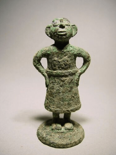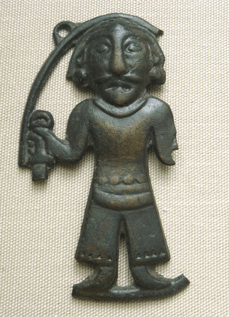 Postać ze specyficznymi, skośnymi oczami, oraz specyficznym łukiem brwiowym, powtarzalnym w tym regionie.