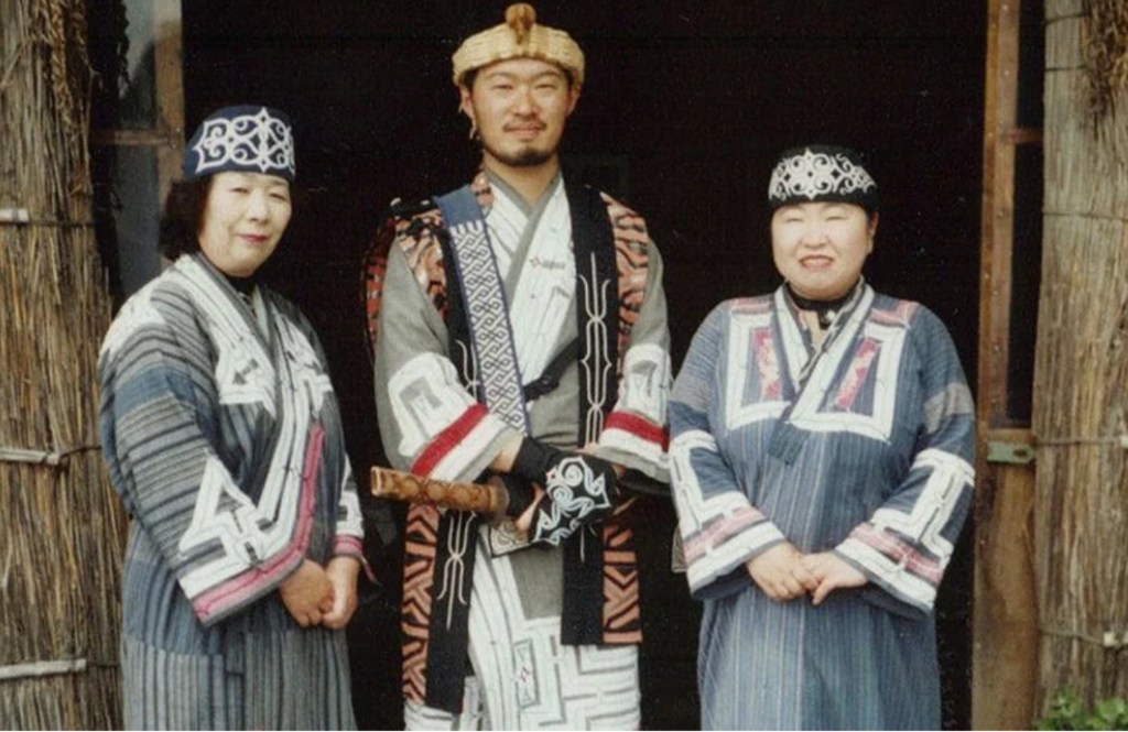 Ajnowie na Hokkaido. Woda analogię do Jakutów w czapkach i wzorkach u kobiet. Mimo o jest cieplejsze niż „japońskie”