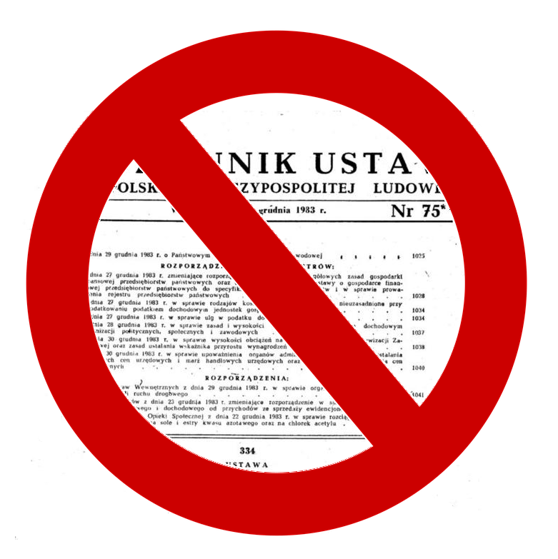 Dlatego też zachęcam do umyślnego łamania prawa pochodzącego z dziennika ustaw PRL. To dobry sposób by sądy musiały się zająć problematyką, a w związku z nielegalnością władz PRL – nikt nie będzie za to ukarany. Bowiem rząd PRL w świetle ZAPISÓW prawa międzynarodowego nie jest rządem Rzeczpospolitej Polskiej, za co najwyżej grupą przestępczą. Ustawa czy dokument PRL może zyskać moc prawną tylko jeśli zostanie zatwierdzony ustawą przez Parlament RP, z mocą wsteczną czy bez.