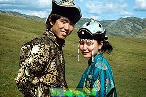 Para w Ałtajskich strojach ludowych, w górach